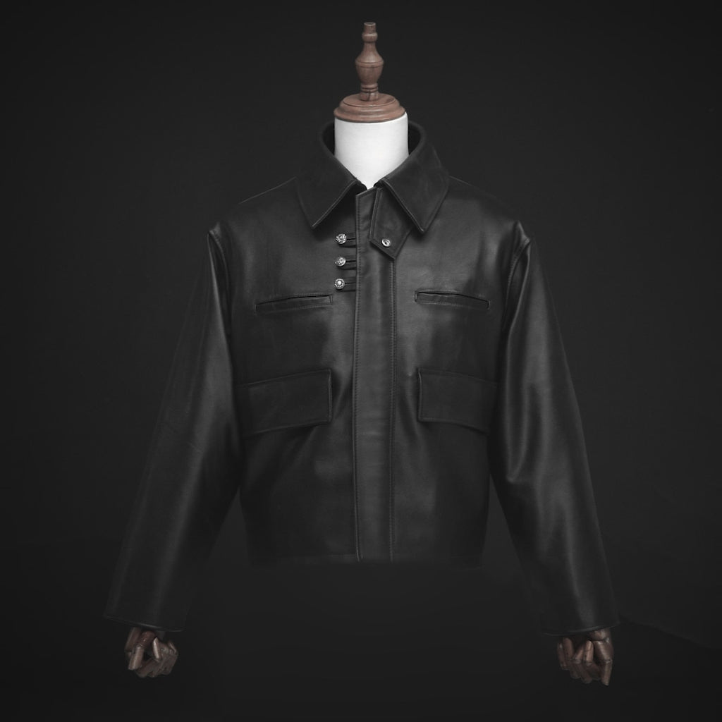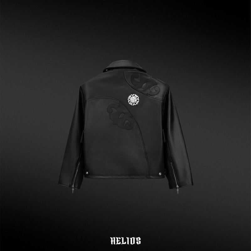 Form áo được phát triển riêng, mang tính độc bản, với kỹ thuật xử lý patching layer da trên lưng phức tạp – đòi hỏi sự tỉ mỉ, mỗi chiếc áo mất 36 tiếng để hoàn thiện. Chất liệu sử dụng da Nappa nguyên miếng dập nổi Sunflower và bạc S925 cho các chi tiết Signature như cúc áo, khoá kéo Chrysaber.