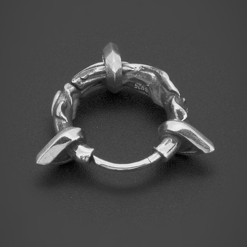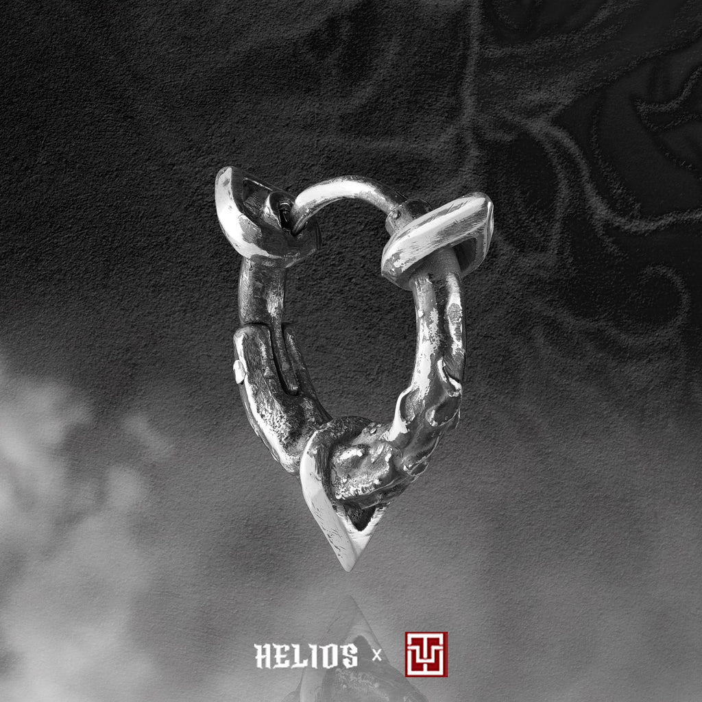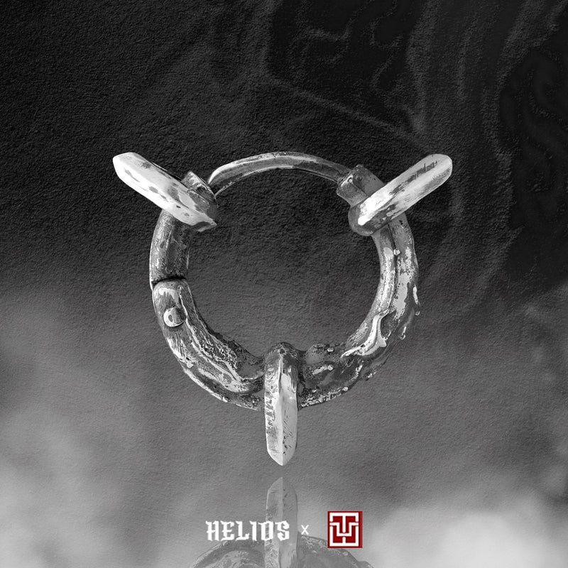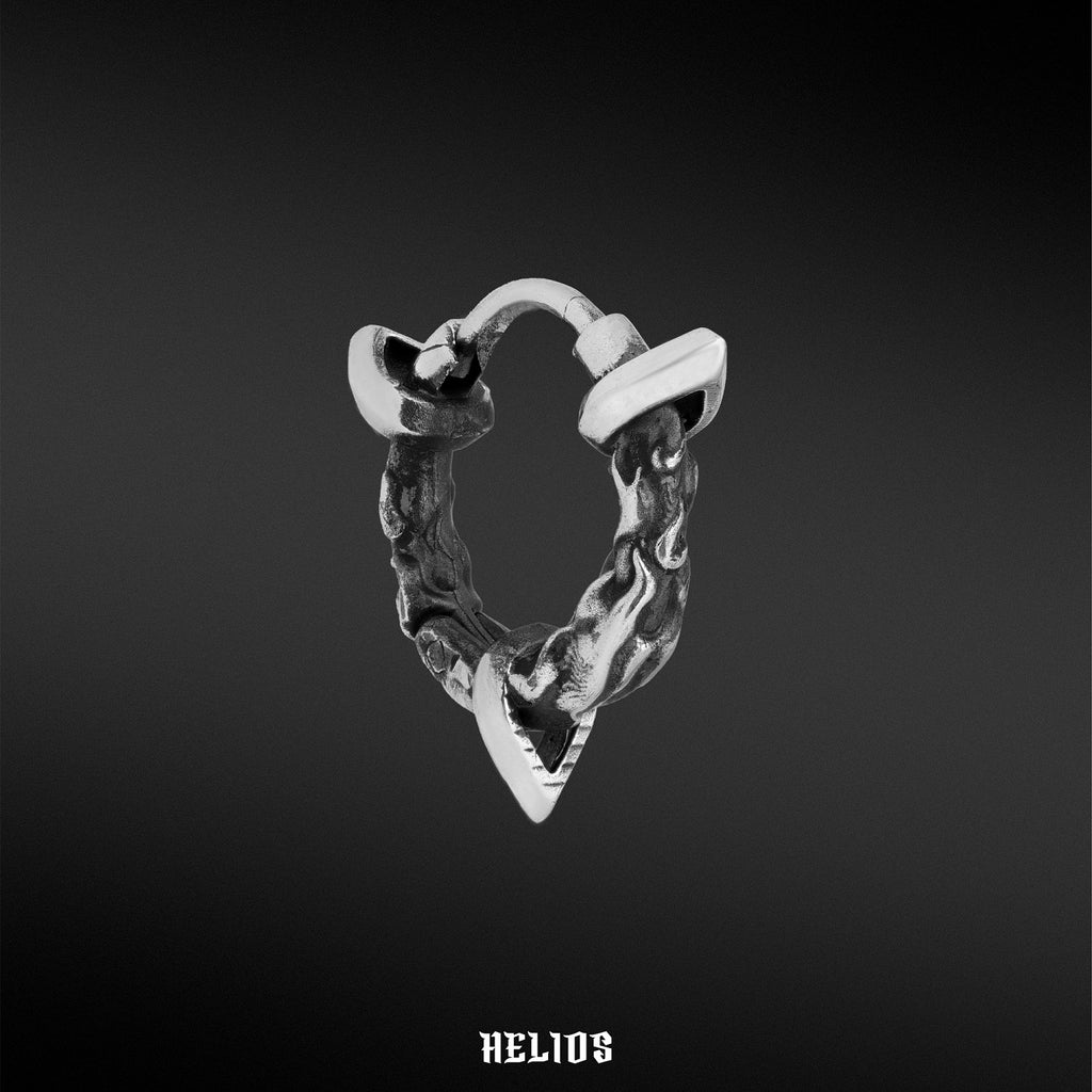 Được tạo hình từ ba vòng gai nhọn và những đường nét của lửa, khuyên Hỏa Luân mang đến cho người đeo một cảm giác mạnh mẽ, thô ráp và ấn tượng.