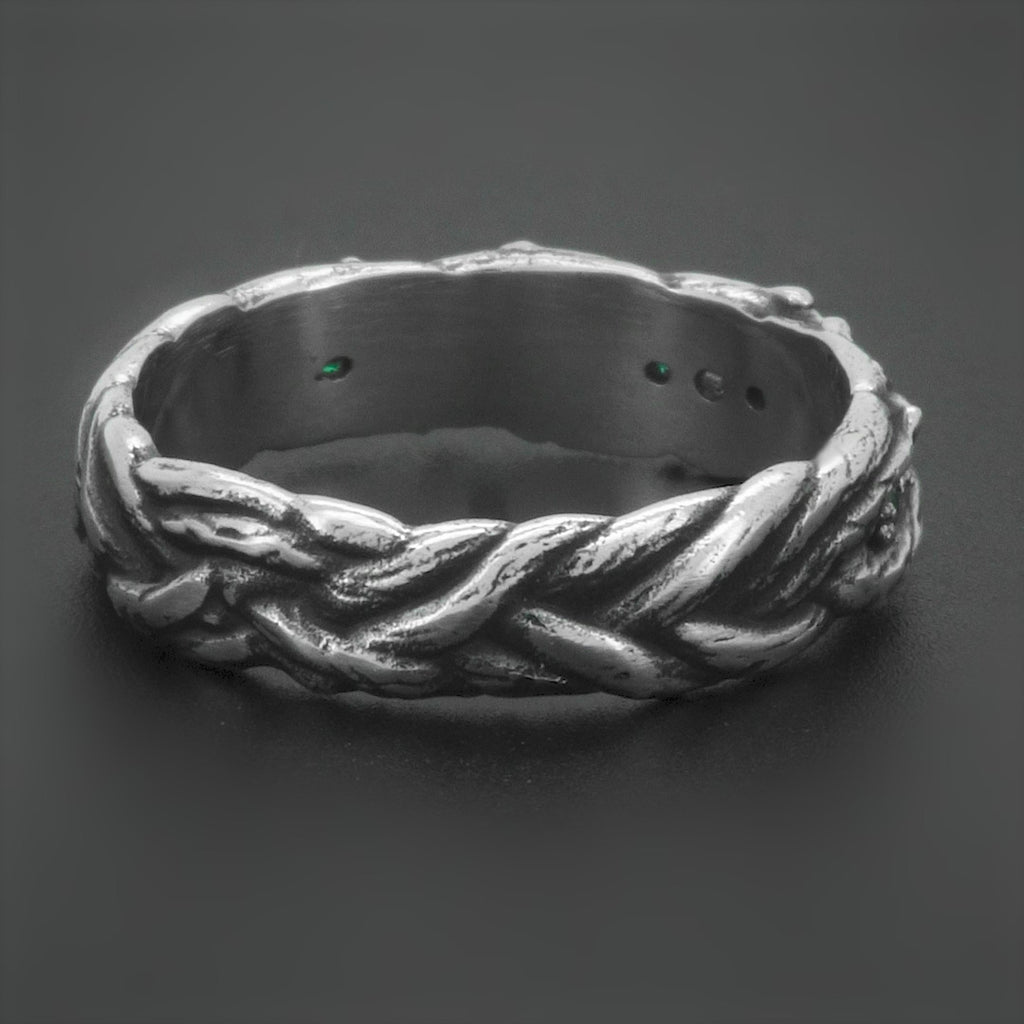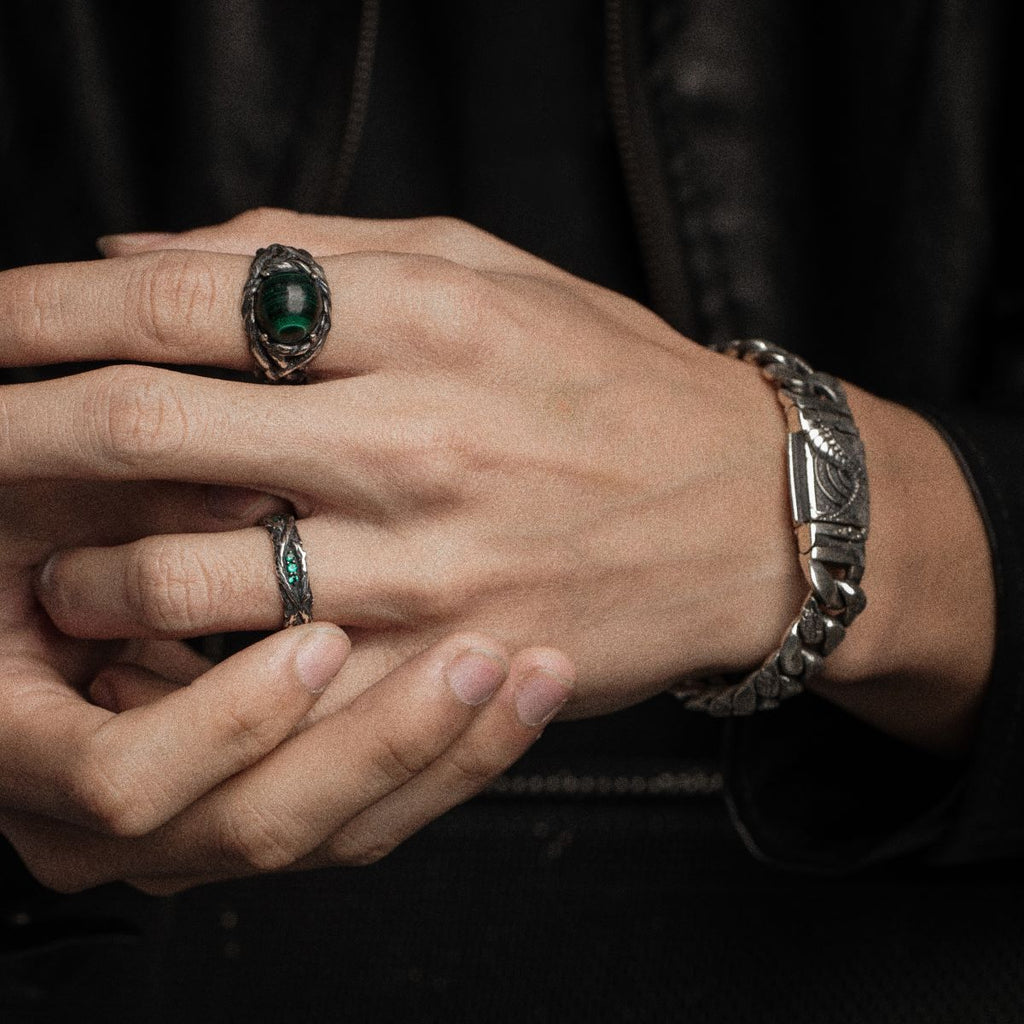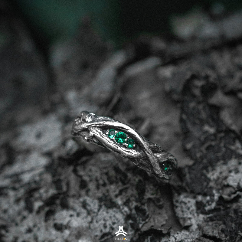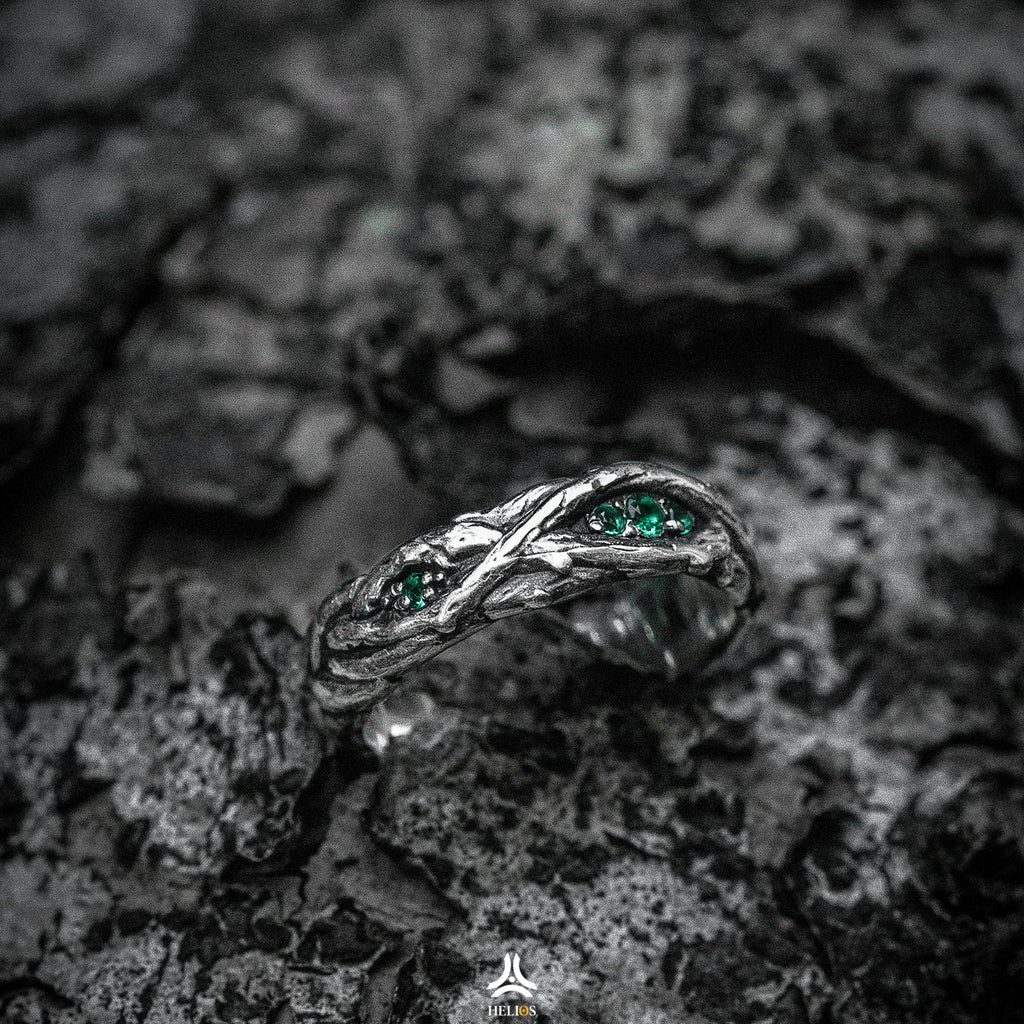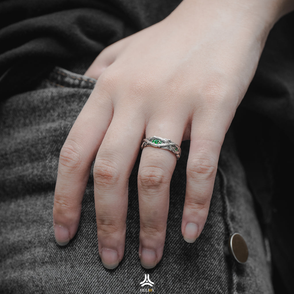 Đối lập với chất liệu bạc Thái S925 cứng cỏi, nhẫn Lianas mang hình dáng của dây leo mềm mại trong rừng nhiệt đới.
