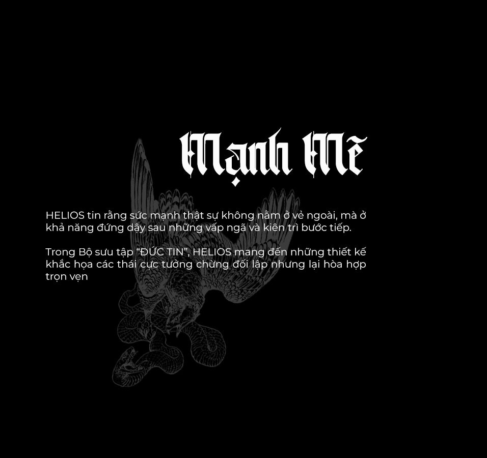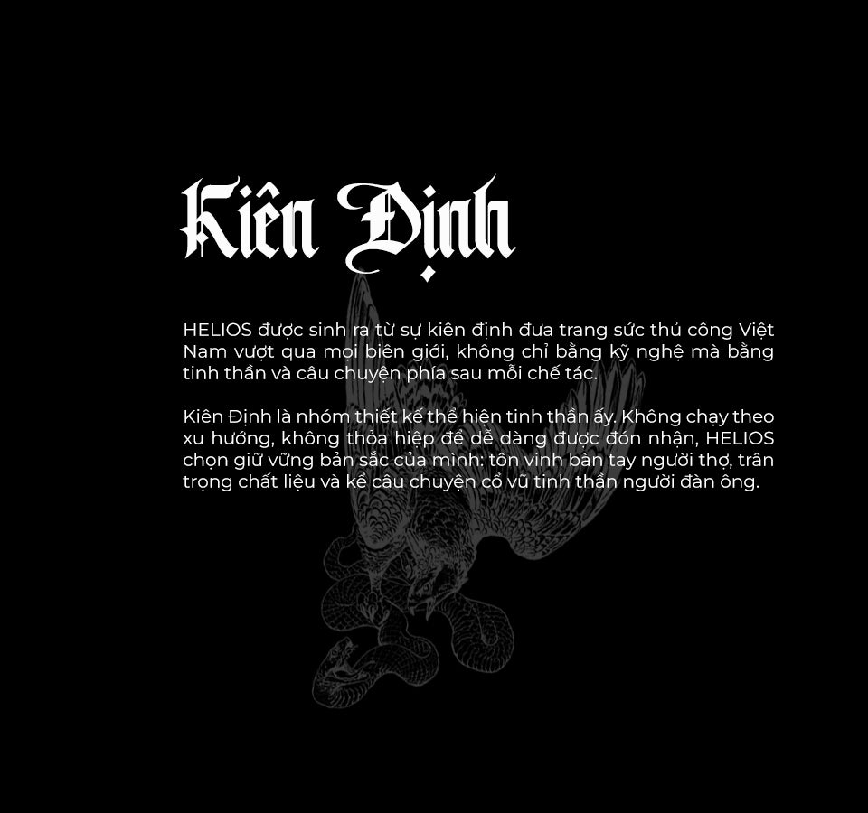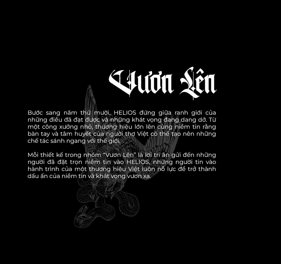 Là bộ sưu tập lớn nhất và mang yếu tố chiều sâu nhất trong năm 2025 của HELIOS. Bộ sưu tập là tổng hòa của những hình tượng signature trong 10 năm phát triển của HELIOS - Lotus, Sunflower, Chrysaber, Bushido. Đồng thời đây là BST sở hữu nhiều phong cách phối nhất từng được chế tác
