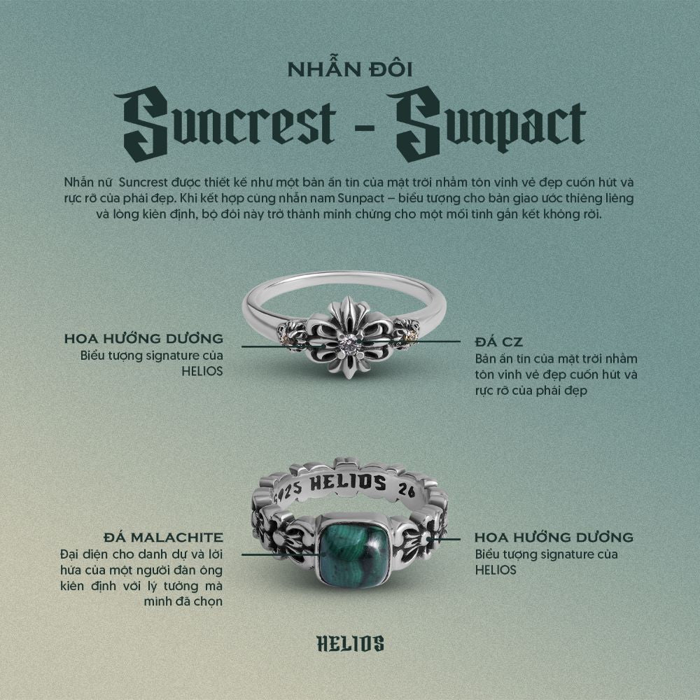 Nhẫn nam Sunpact Black Silver là một bản giao ước thiêng liêng được thực hiện dưới sự chứng giám của mặt trời. Thiết kế này đại diện cho danh dự và lời hứa của một người đàn ông kiên định với lý tưởng mà mình đã chọn. Khi kết hợp cùng nhẫn nữ Suncrest - một bản ấn tín của mặt trời, bộ đôi này trở thành minh chứng cho một mối tình gắn kết không rời. Valentine này, hãy để Suncrest và Sunpact thay bạn kể câu chuyện về tình yêu vĩnh cửu.
