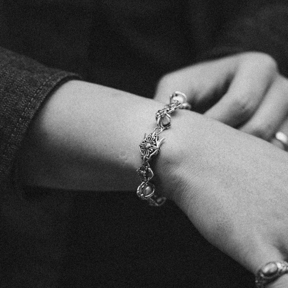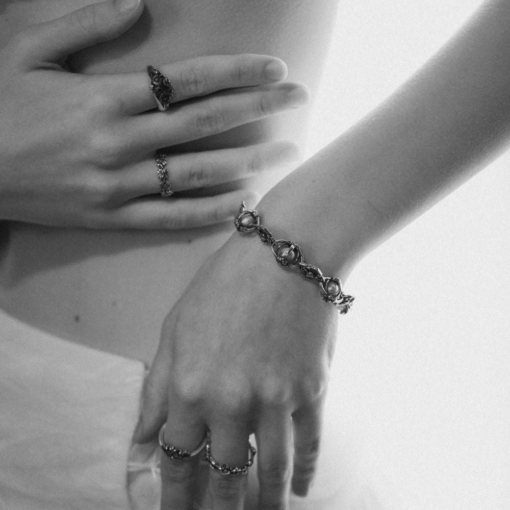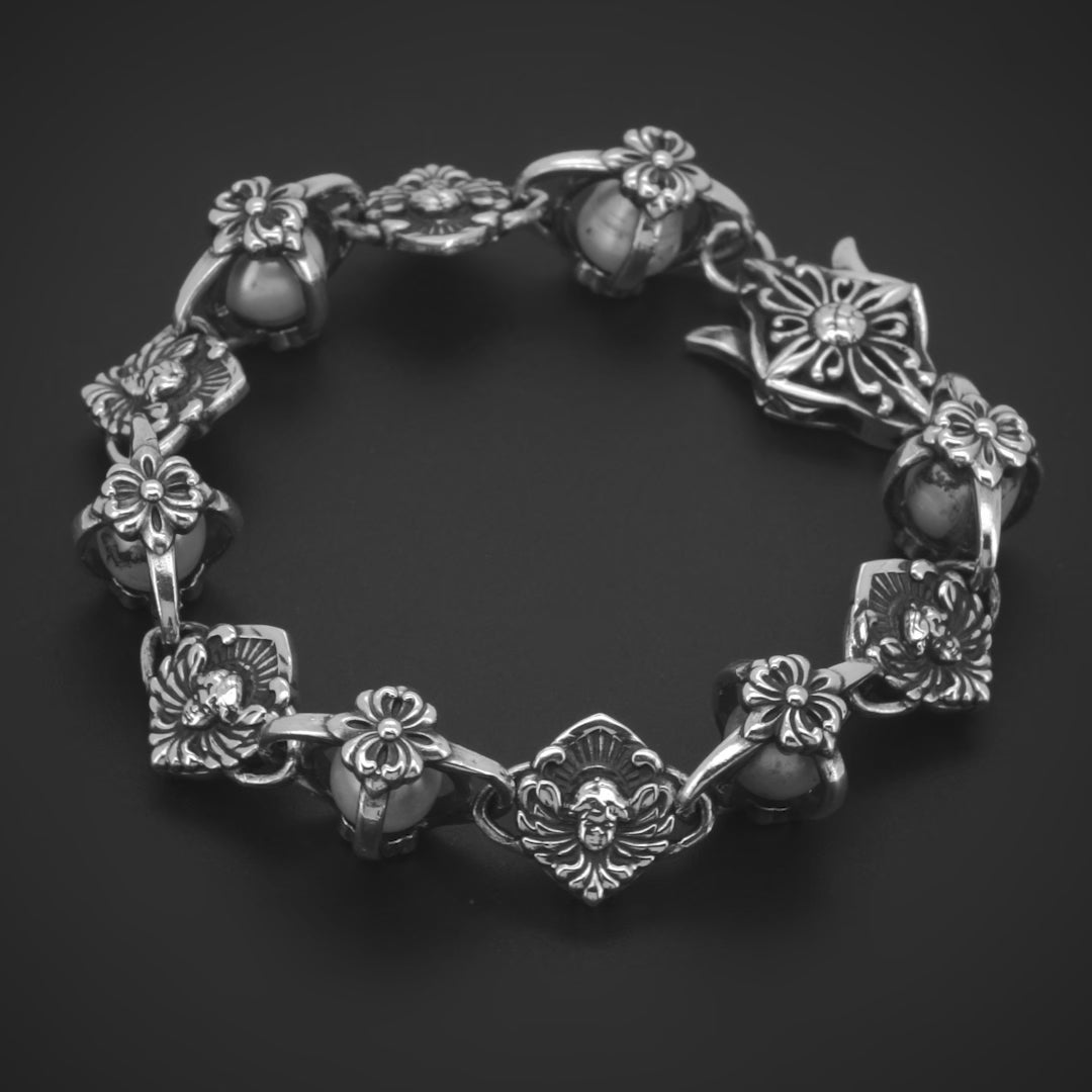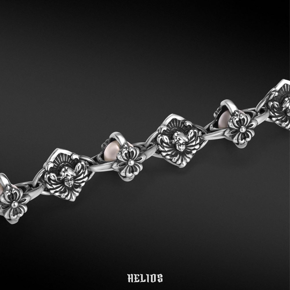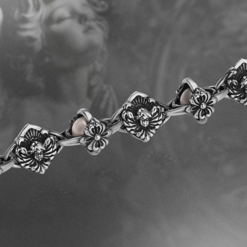 Angel Sphere đặt một viên ngọc trai - thứ rất thuần khiết ở trung tâm, rồi để bạc ôm trọn quanh nó. Chiếc vòng này không nói rằng bạn phải luôn mạnh mẽ. Nó nói rằng ngay cả người đàn ông cứng cỏi nhất cũng có một phần trong mình cần được bảo vệ - yêu thương, đam mê, hay một điều khiến bạn trở về đúng con người mình.