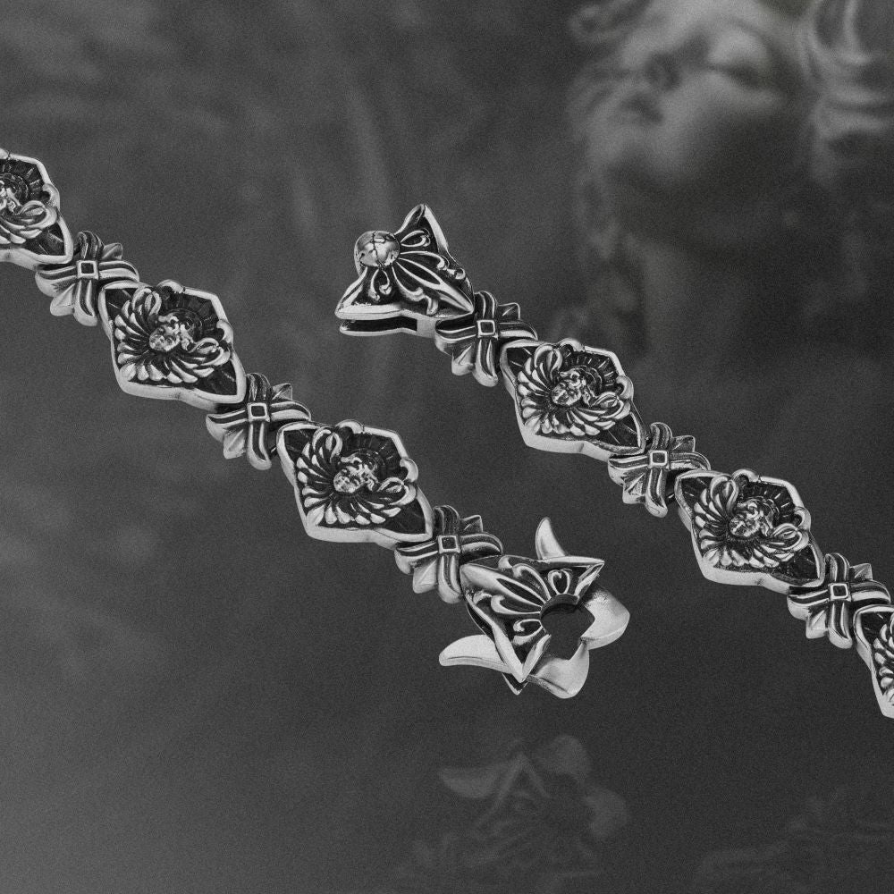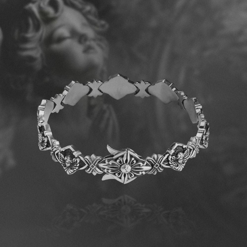 Sanctus được tạo hình từ những baby angel liên kết thành một vòng khép kín, ôm trọn cổ tay như một cái ôm của thiên thần. Hình tượng này gợi cảm giác được che chở và giữ lại sự bình yên, dù chỉ là rất nhỏ, giữa những ngày nặng nề.