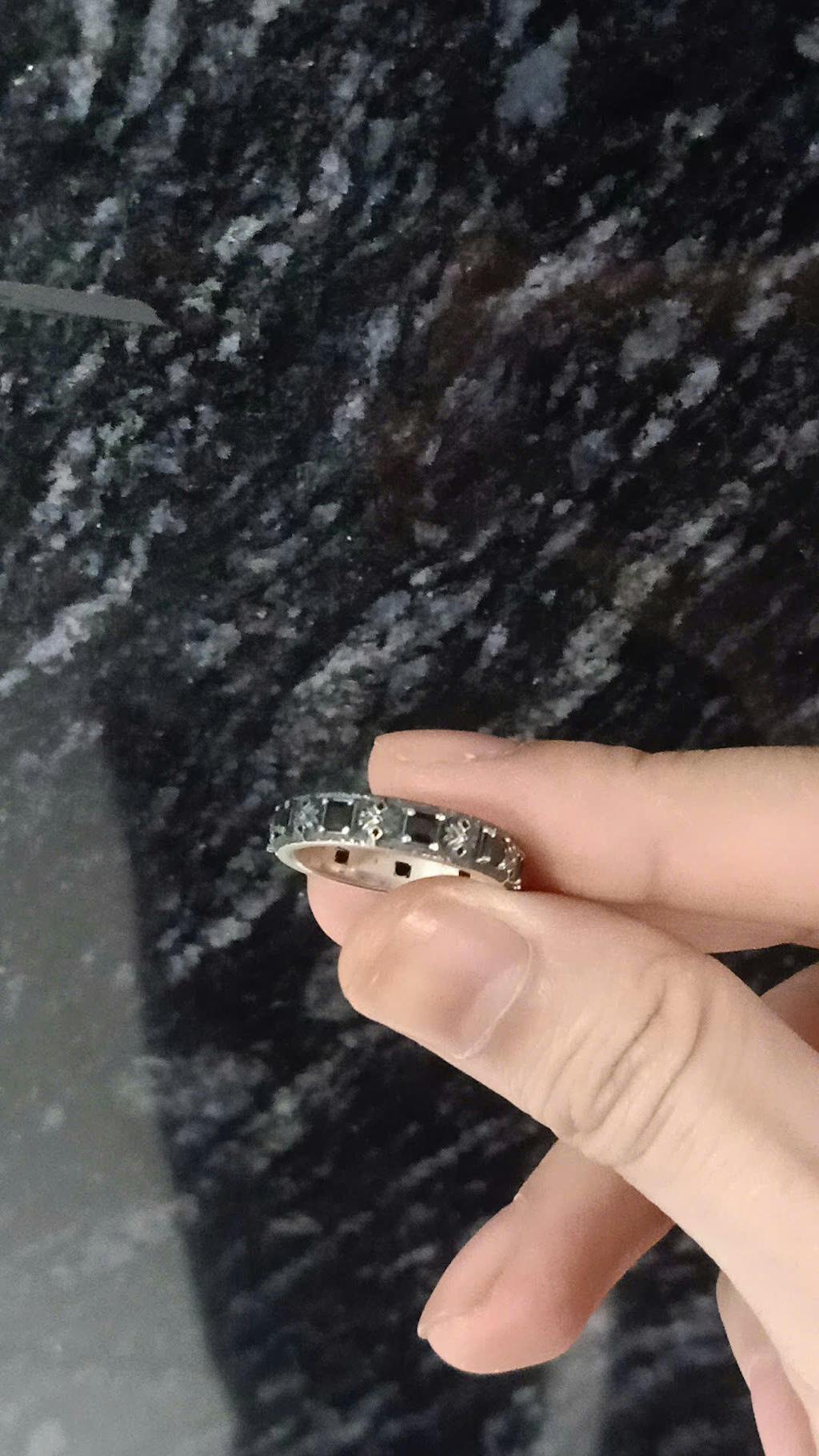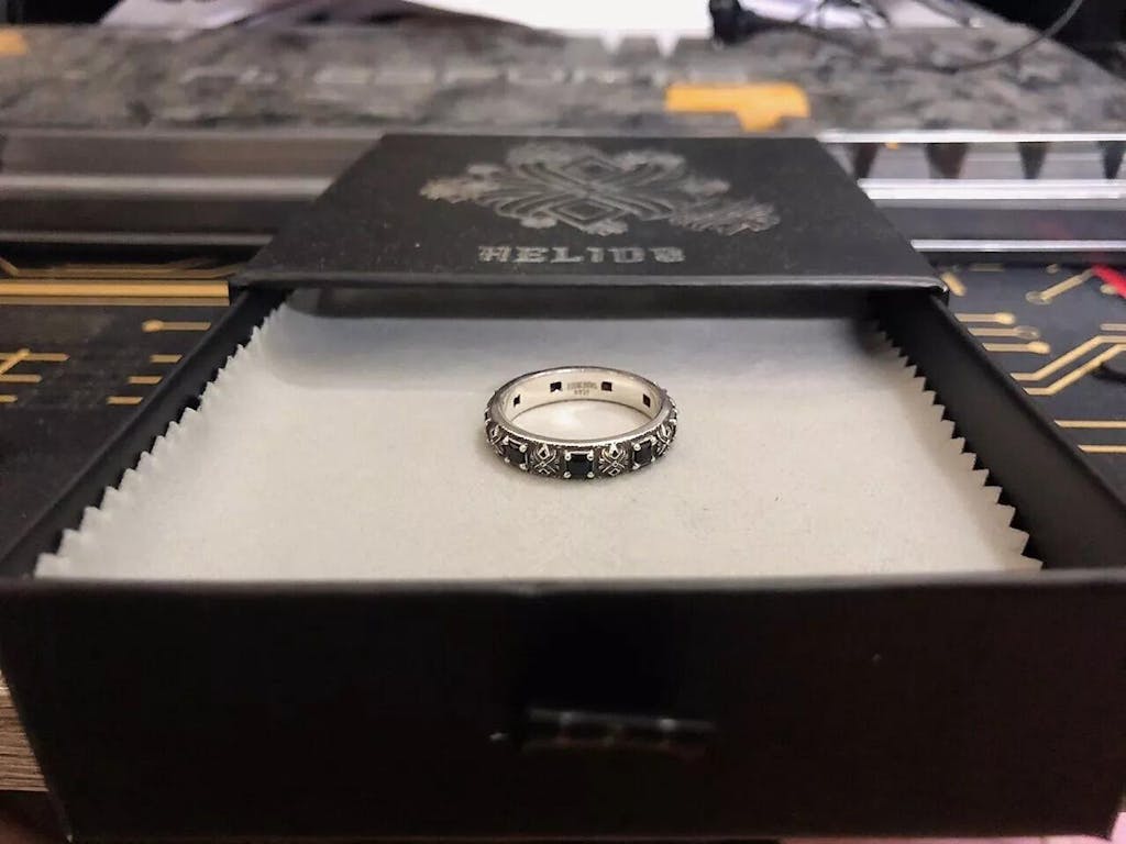 The band ring design, combined with black CZ stones, gives the entire piece a lighter feel compared to its predecessors.