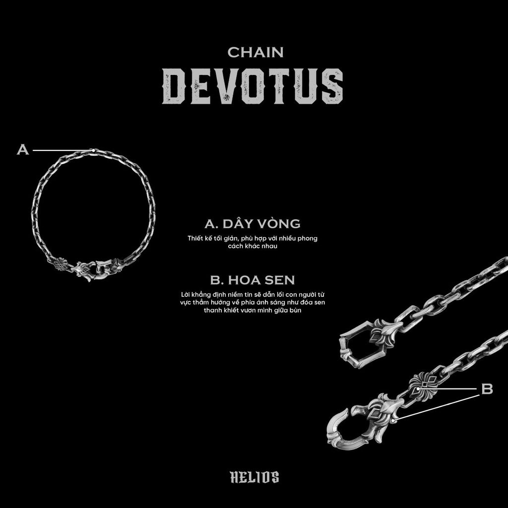 Chain Devotus is inspired by HELIOS' signature lotus symbol to recreate the inner journey of human beings - where faith becomes the power that guides them from the darkness towards the light to find their own origin.