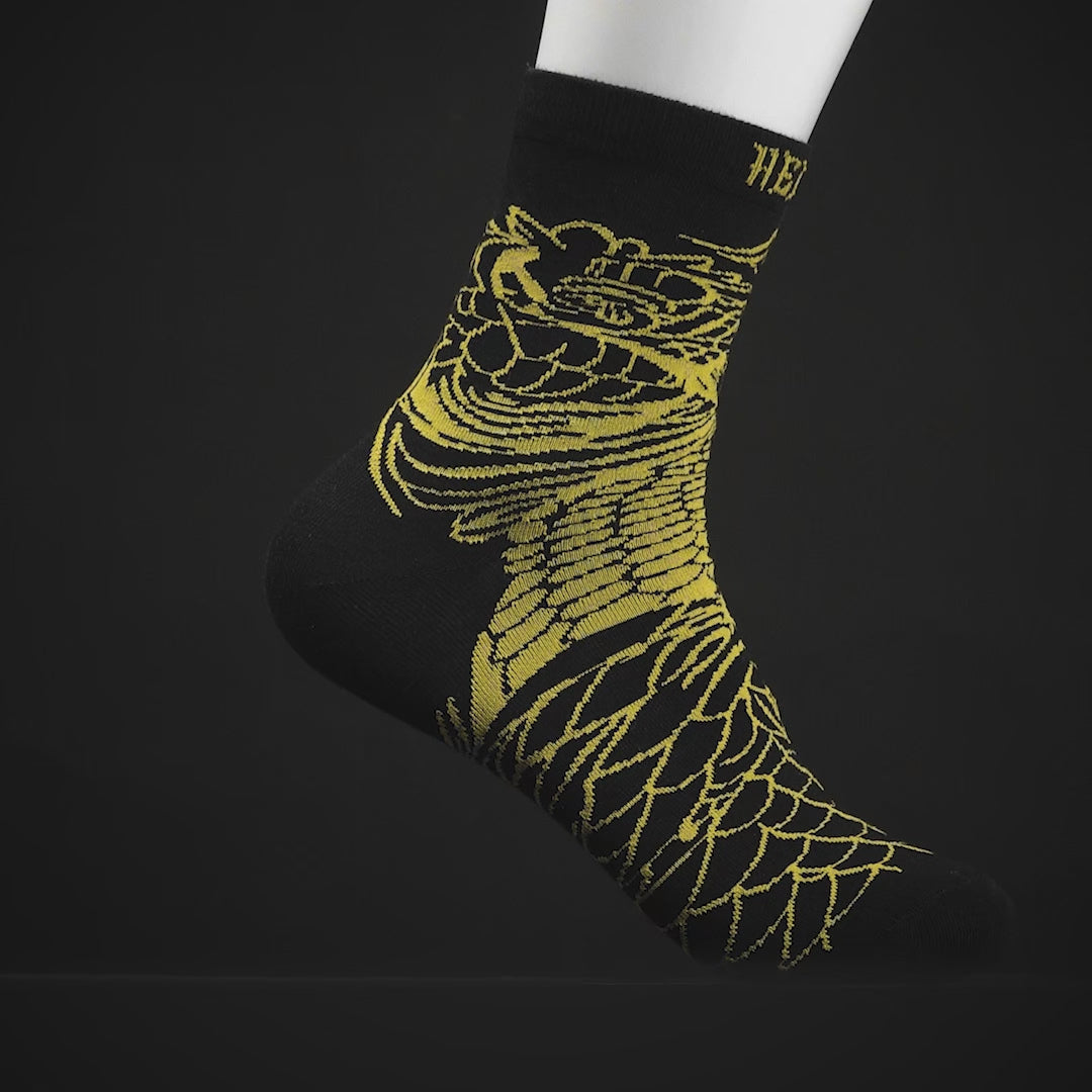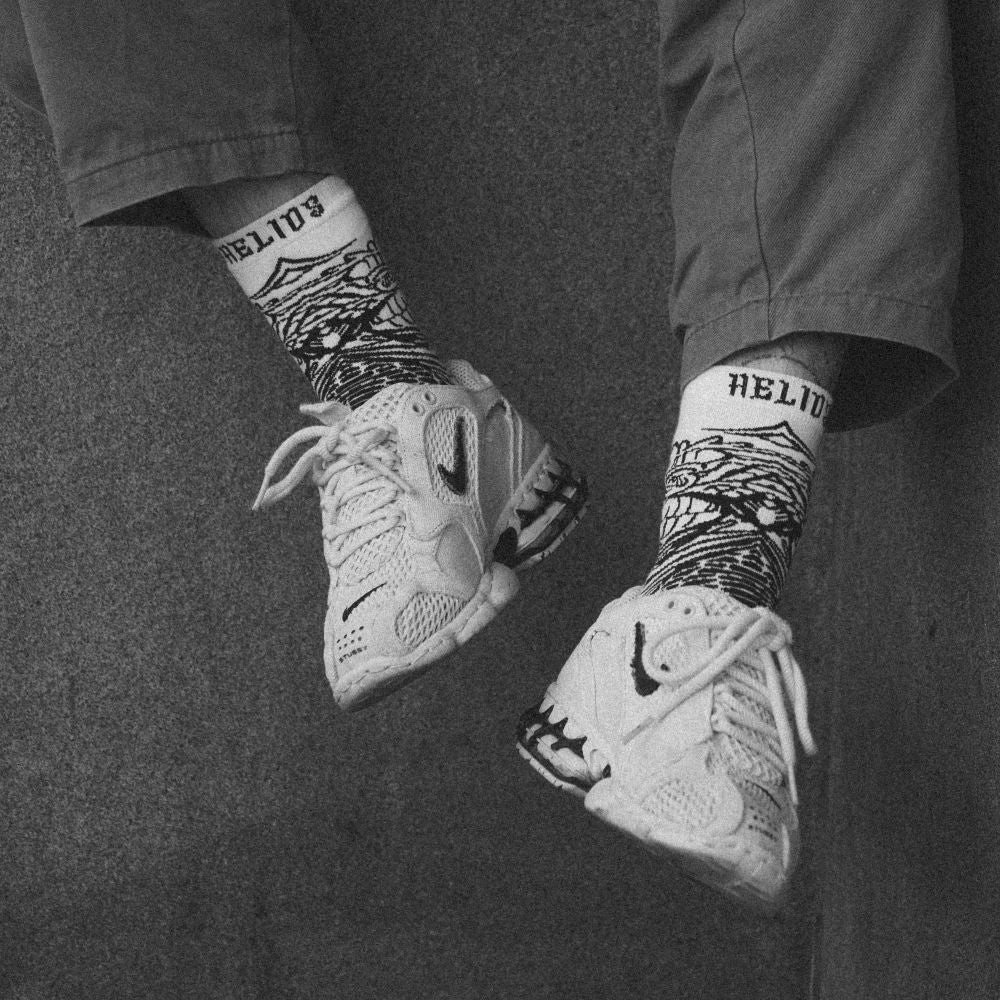 Điểm mình thấy hơi bất tiện là lúc xỏ vào ban đầu hơi khó, nhất là với chân to hoặc mu cao. Nguyên nhân là do % spandex/elastane khá ít, Helios đầu tư nhiều vào dệt họa tiết và giữ form, nên phần gót với lòng bàn chân sau không giãn nhiều như mấy loại tất thiên về êm mềm