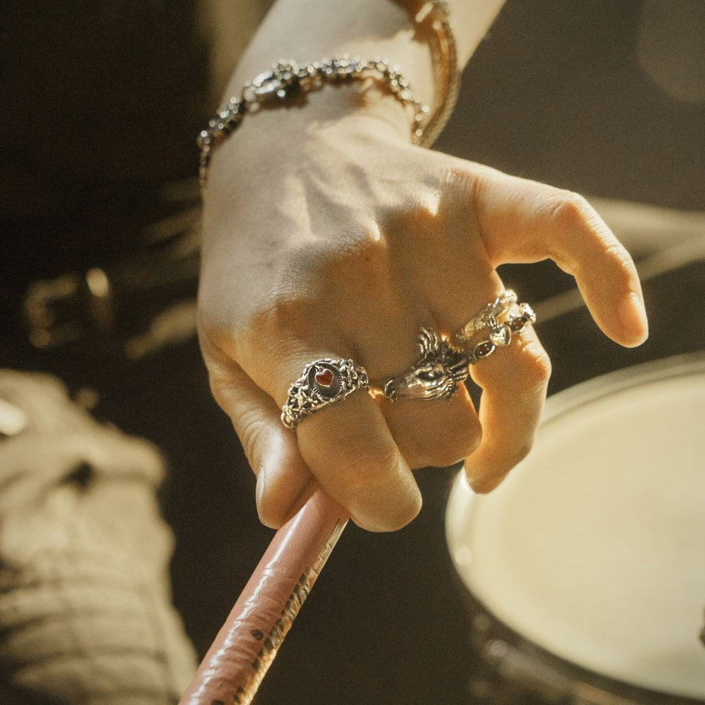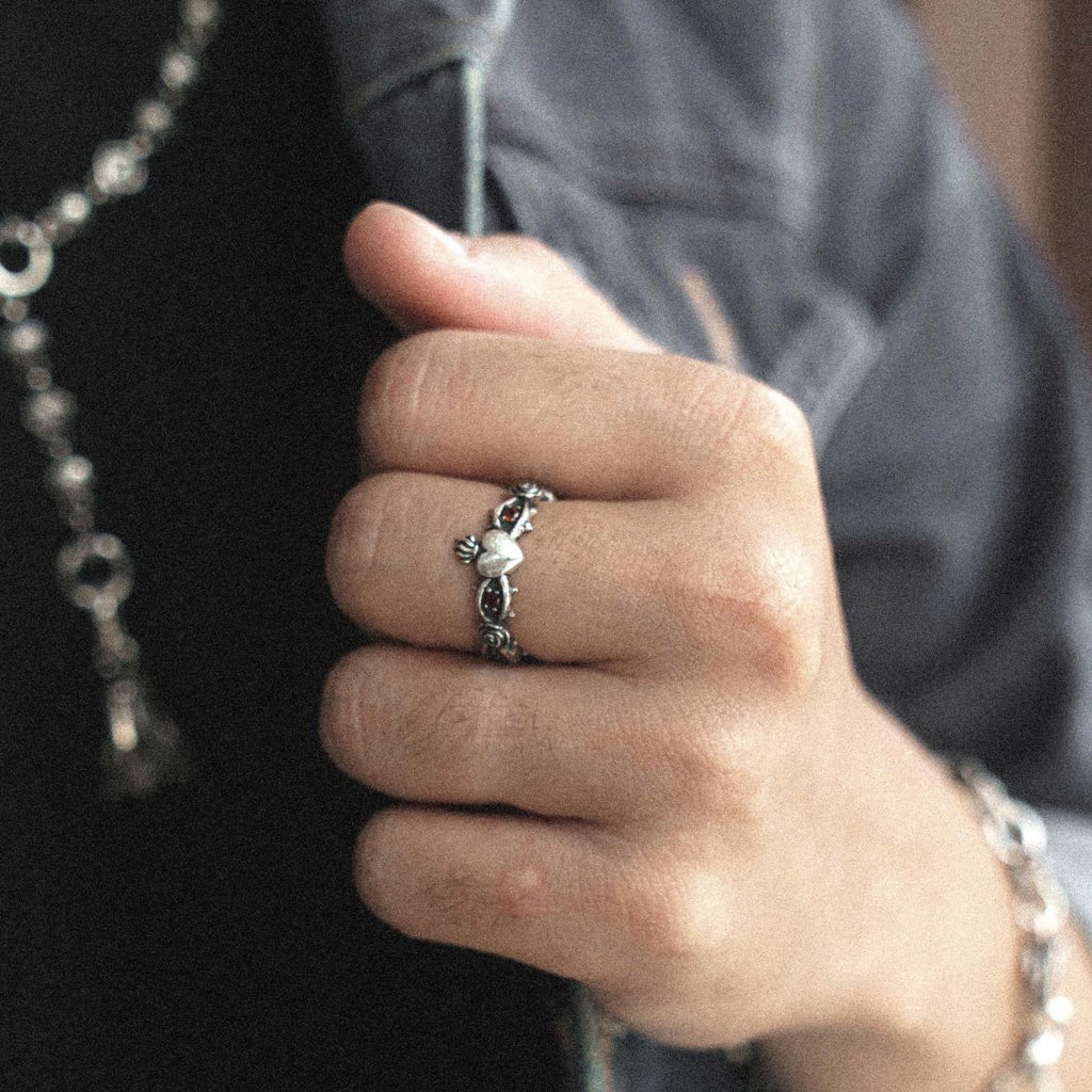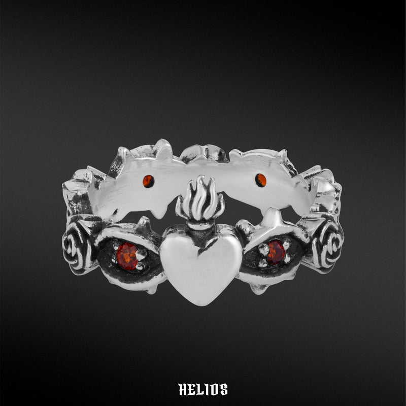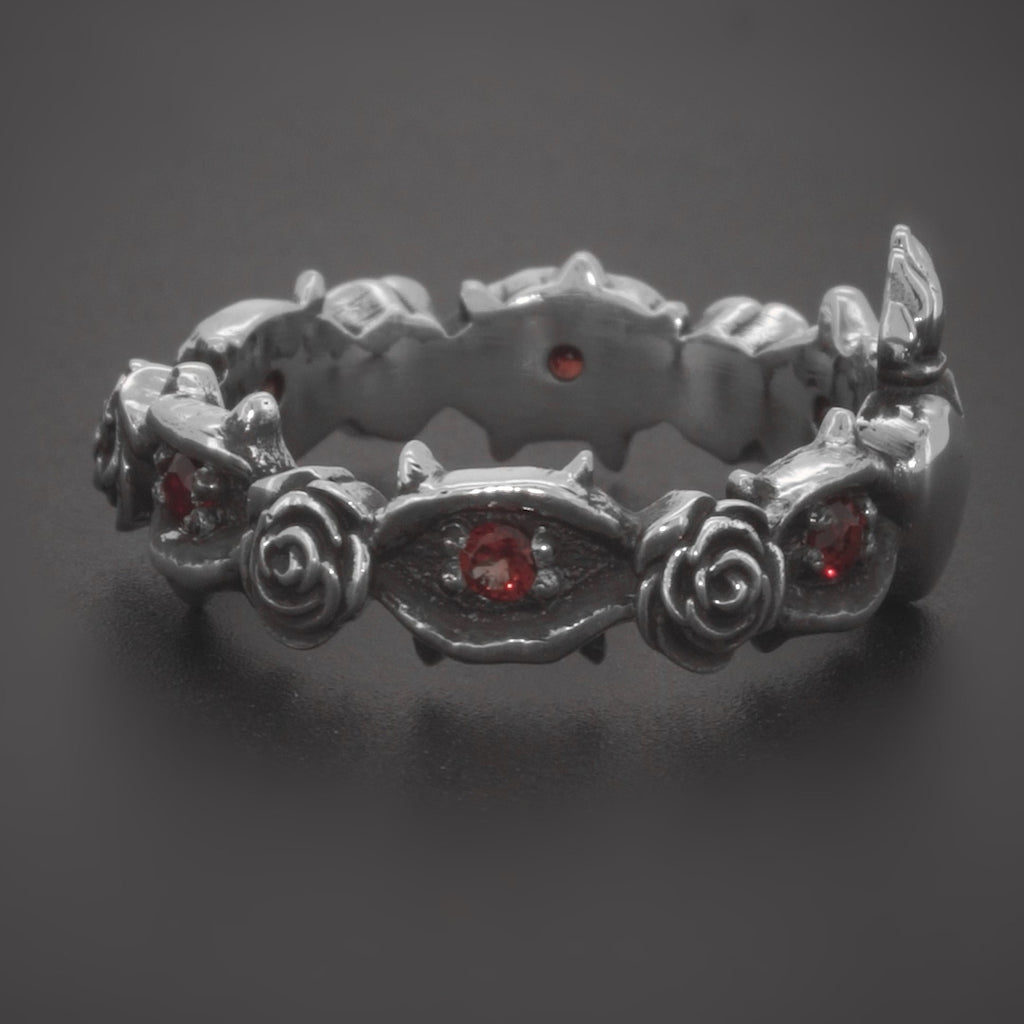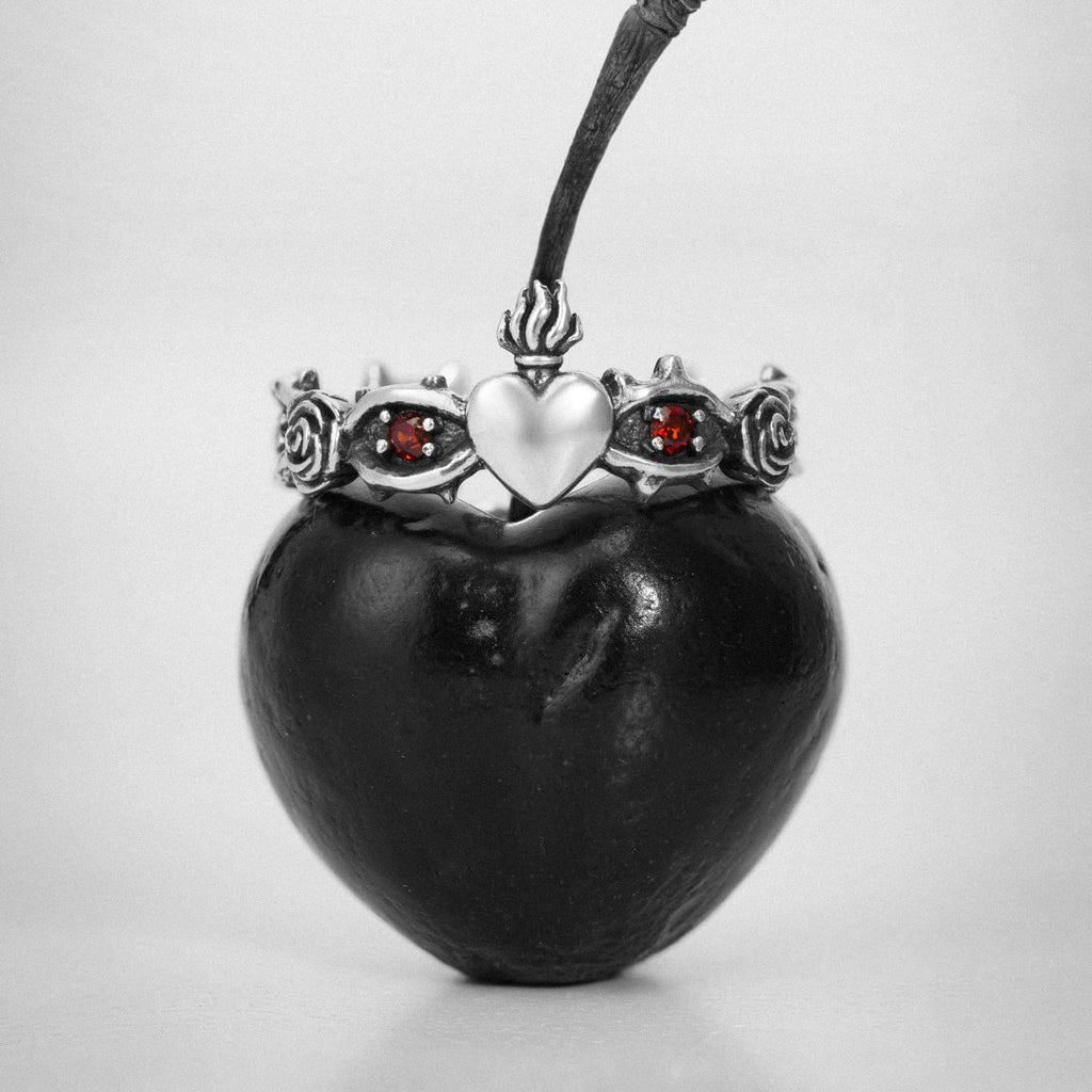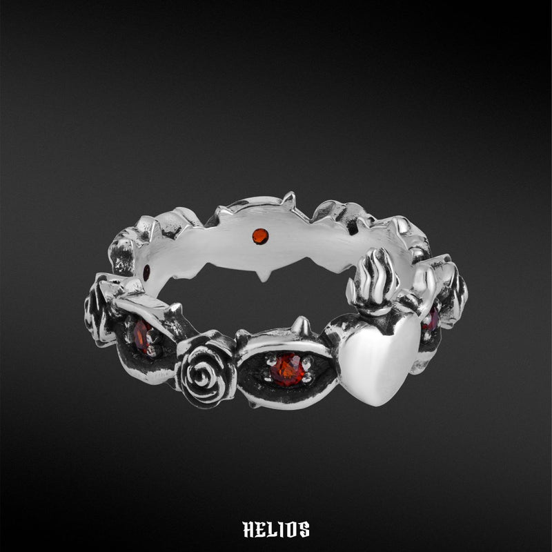 아모리스는 장미와 붉은 가넷으로 장식된 날카로운 왕관의 형태를 띠고 있으며, 마치 끝없는 열정과 헌신의 고리를 연상시킵니다. 이 디자인은 대다수의 사람들에게는 어울리지 않지만, 삶을 충만하게 살고 내면의 가장 험난하고 어두운 면까지도 마주하며 끝없는 열정을 추구하고 자신의 꿈을 이루는 사람들의 선택입니다.