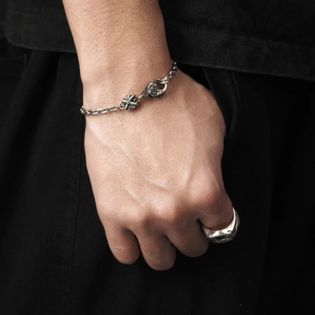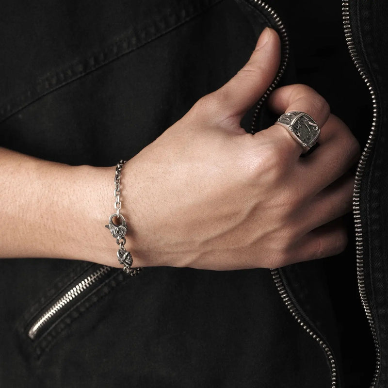 아틀라스는 시그니처 블랙 도금과 두꺼운 브레이슬릿 외에도 헬리오스 시그니처인 로터스 모티프를 두 가지 버전으로 선보입니다. 하나는 클래스프에, 다른 하나는 참에 새겨져 있습니다. 이 모든 요소가 어우러져 심플하면서도 강렬한 포인트를 더합니다.