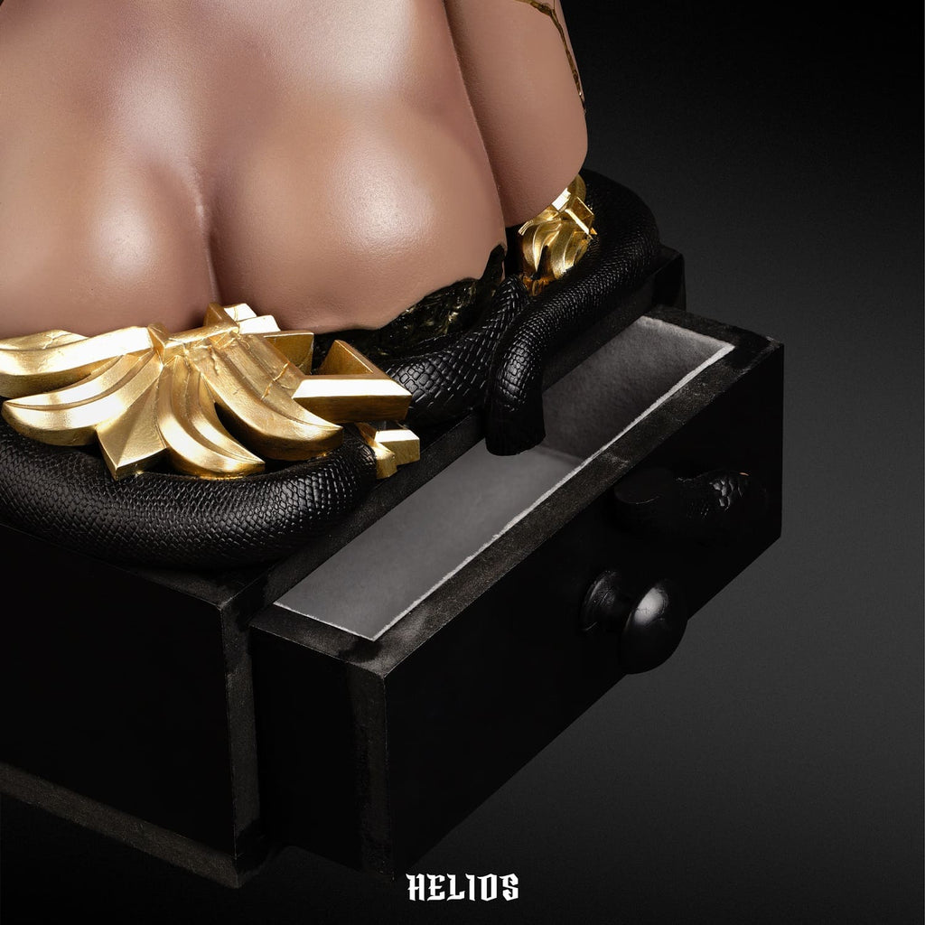 뱀의 해 타이(Ty)는 헬리오스(Helios)가 유사점을 발견하고 메두사 피규어에 대한 아이디어를 촉발한 기원입니다. 이 제품은 아래 서랍에 전시 및 보관용으로 사용할 수 있습니다.