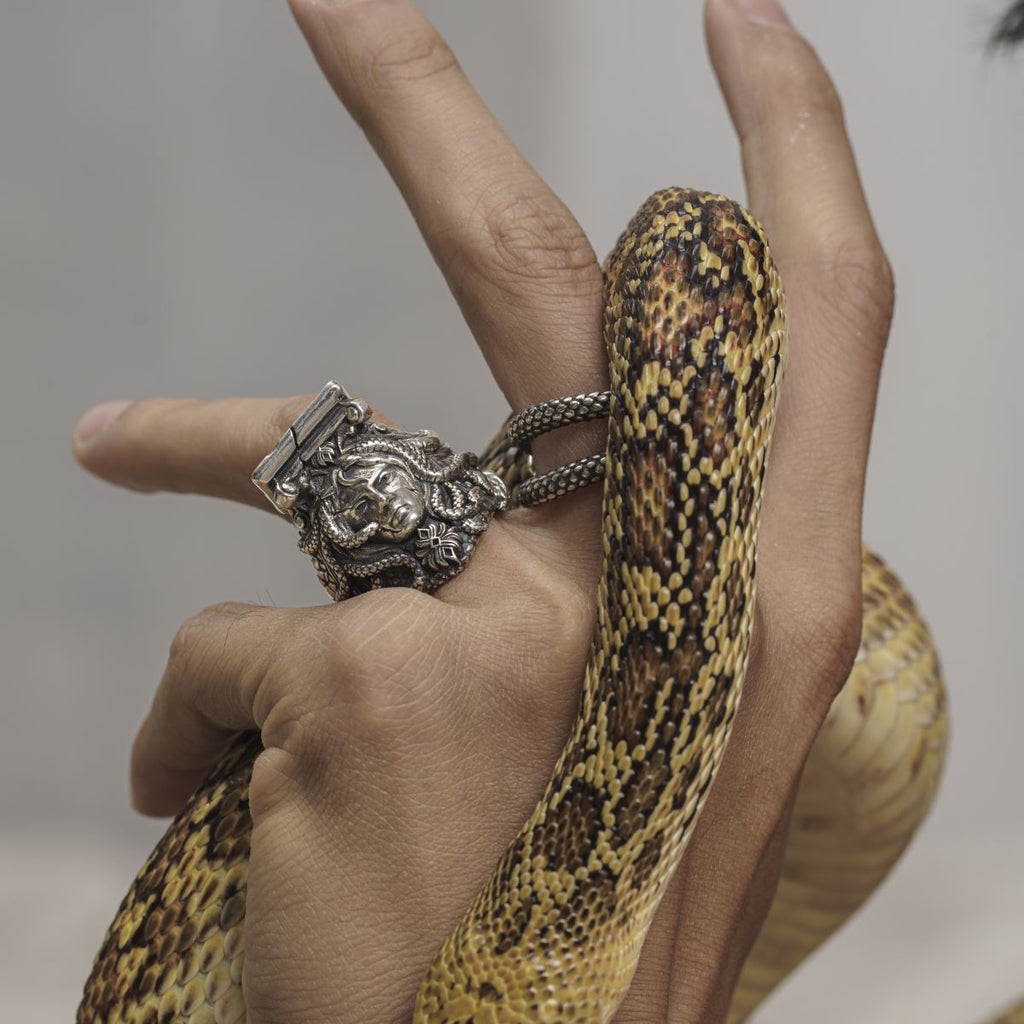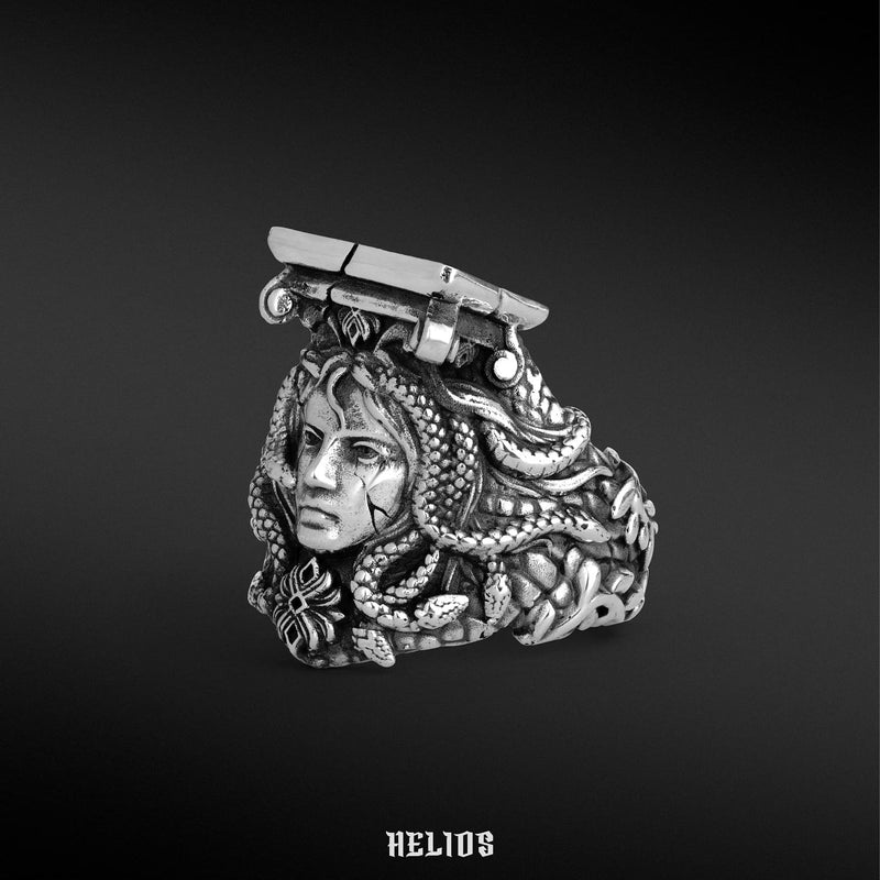 오늘날까지도 그녀의 아름다움과 힘은 헬리오스에게도 끝없는 예술적 창조의 원천으로 남아 있습니다. 메두사의 형상과 연꽃 무늬가 결합된 고르곤 반지의 탄생도 바로 이곳에서 시작됩니다.