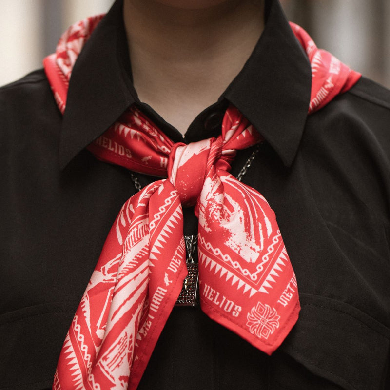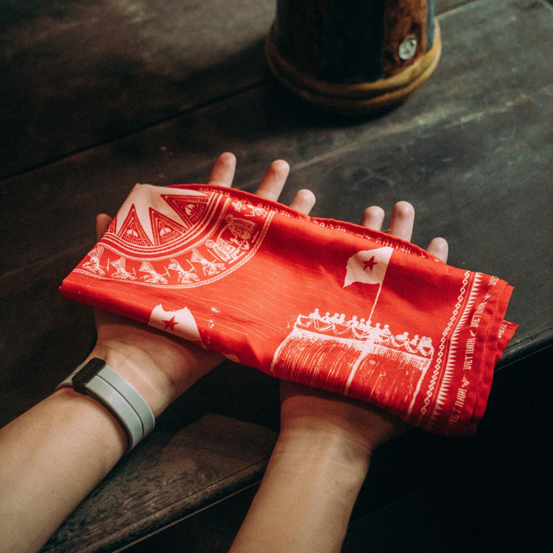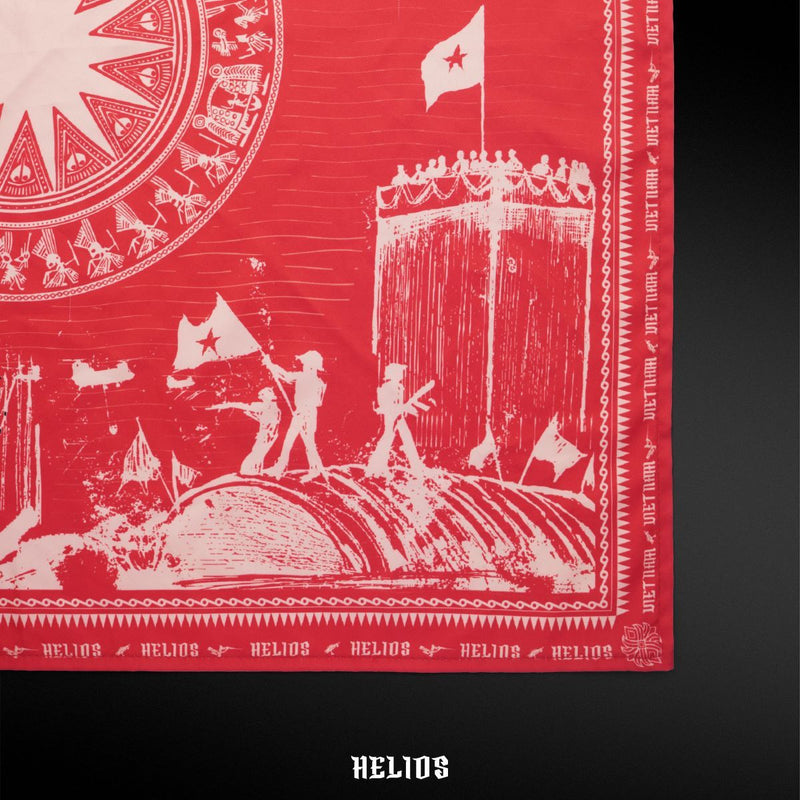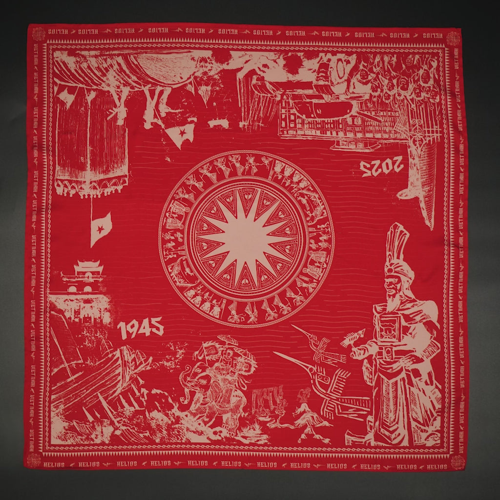 70x70cm 크기의 이 특별한 반다나는 수천 년간 나라를 건설하고 수호해 온 베트남 역사의 흐름을 보여주는 시간 지도입니다. 훙 왕과 쯩 자매의 모습부터 시작하여 프랑스와 미국에 맞선 저항 전쟁의 영웅적인 역사를 거쳐 오늘날 국기의 색깔처럼 찬란한 현대적이고 평화로운 베트남으로 마무리됩니다.