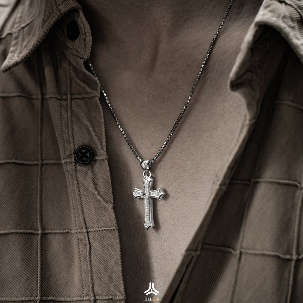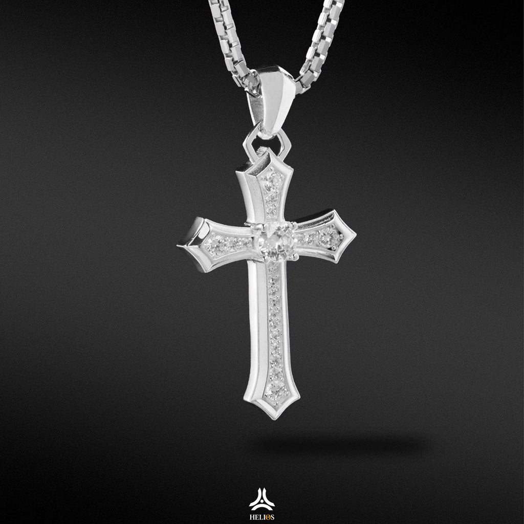 이 디자인의 하이라이트는 십자가를 따라 꼼꼼하게 장착된 CZ 스톤으로, 더욱 시원하고 대담한 느낌을 줍니다.