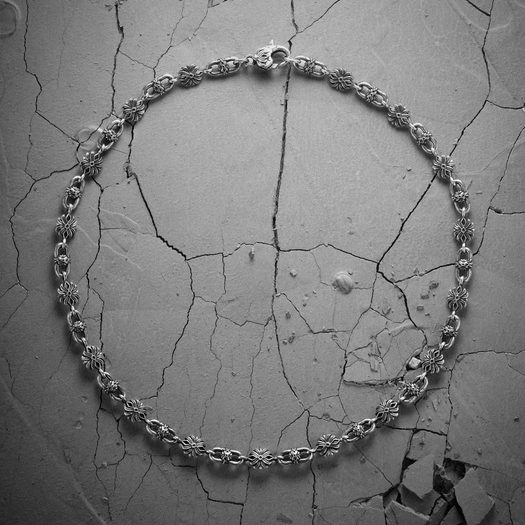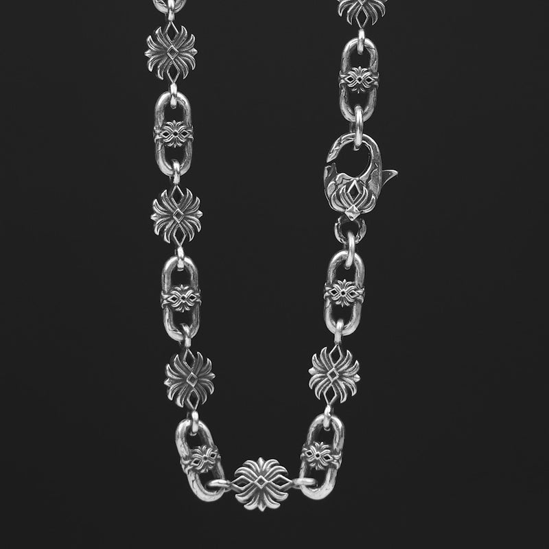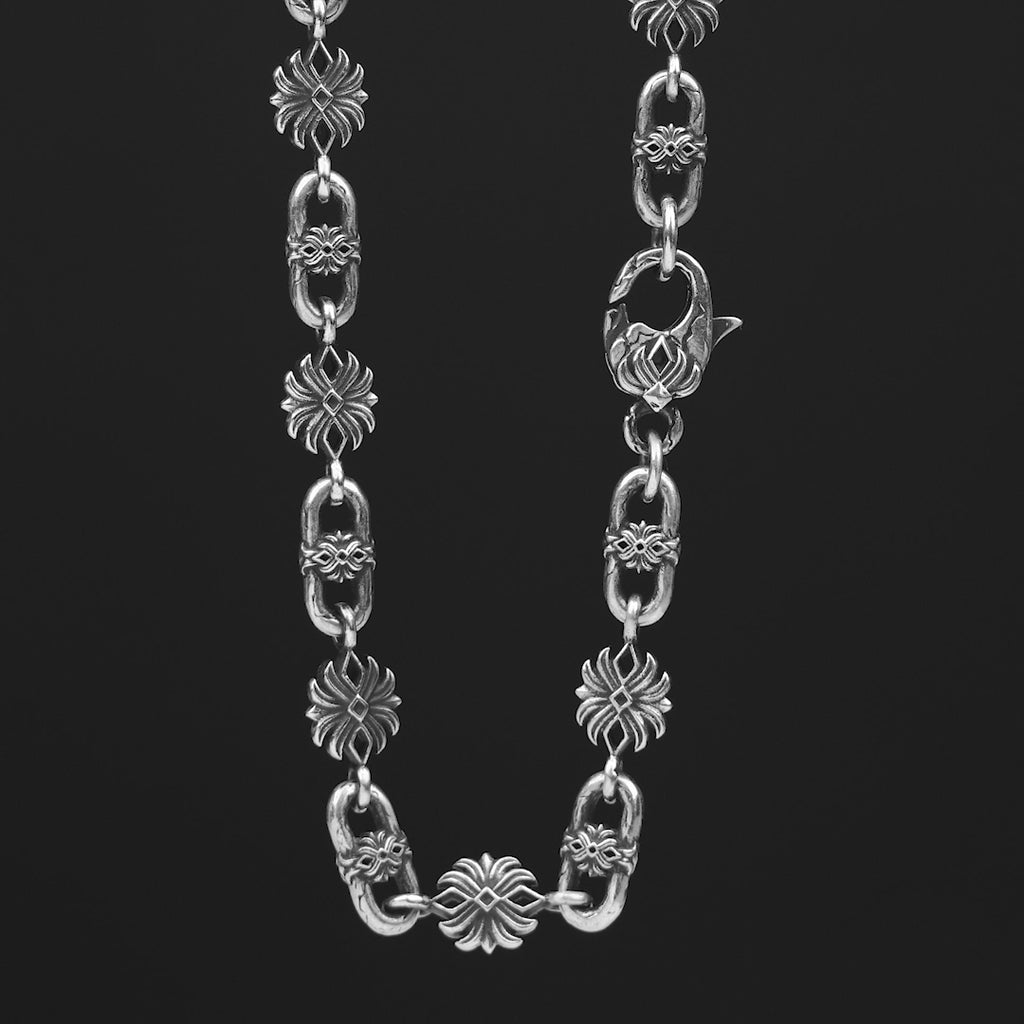 두껍고 정교하게 만들어진 사슬과 중앙에 가시가 있는 연꽃 상징이 있는 사가노 로터스는 끊임없는 변화와 힘, 그리고 언제나 낡은 틀을 깨뜨릴 준비가 된 정신을 상징합니다.