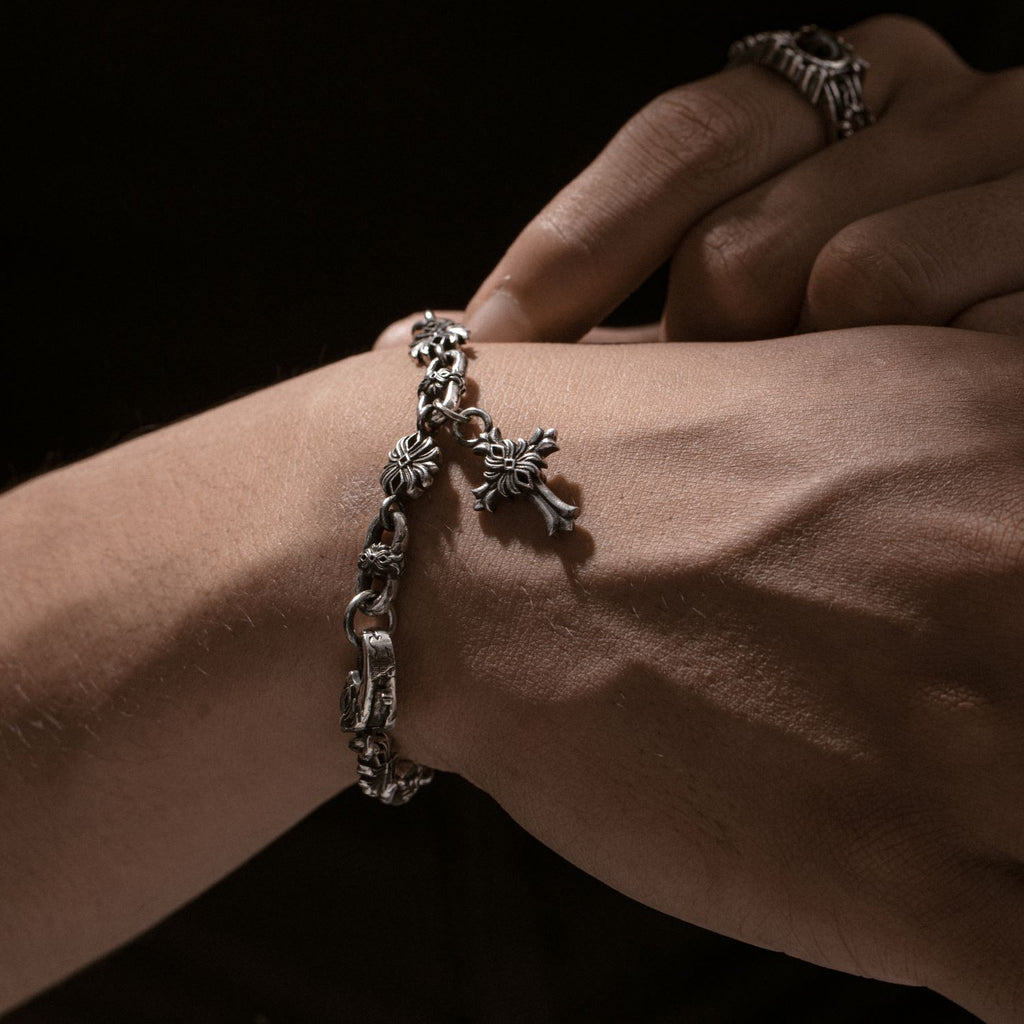 두껍고 정교하게 만들어진 사슬과 중앙에 가시가 있는 연꽃 상징이 있는 사가노 로터스는 끊임없는 변화, 힘, 그리고 틀을 깨려는 의지를 상징합니다.