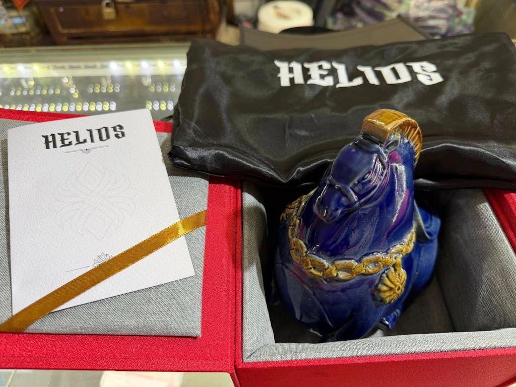 Cách gia công gốm cũng giống như trang sức, mang tính thủ công cực cao. Nên mỗi Phúc Cửu Hồng Mã đều có màu đặc trưng duy nhất. Phần yên ngựa Lotus ở phiên bản này cũng được sắp xếp ngẫu nhiên theo từng người thợ ghép PHƠ. Không sản phẩm nào giống sản phẩm nào nên mọi người nên tới trực tiếp tại cửa hàng để lựa. Khi mua online sẽ random màu và họa tiết. Helios không đổi trả cho sản phẩm gốm với lý do không đúng màu sắc website.